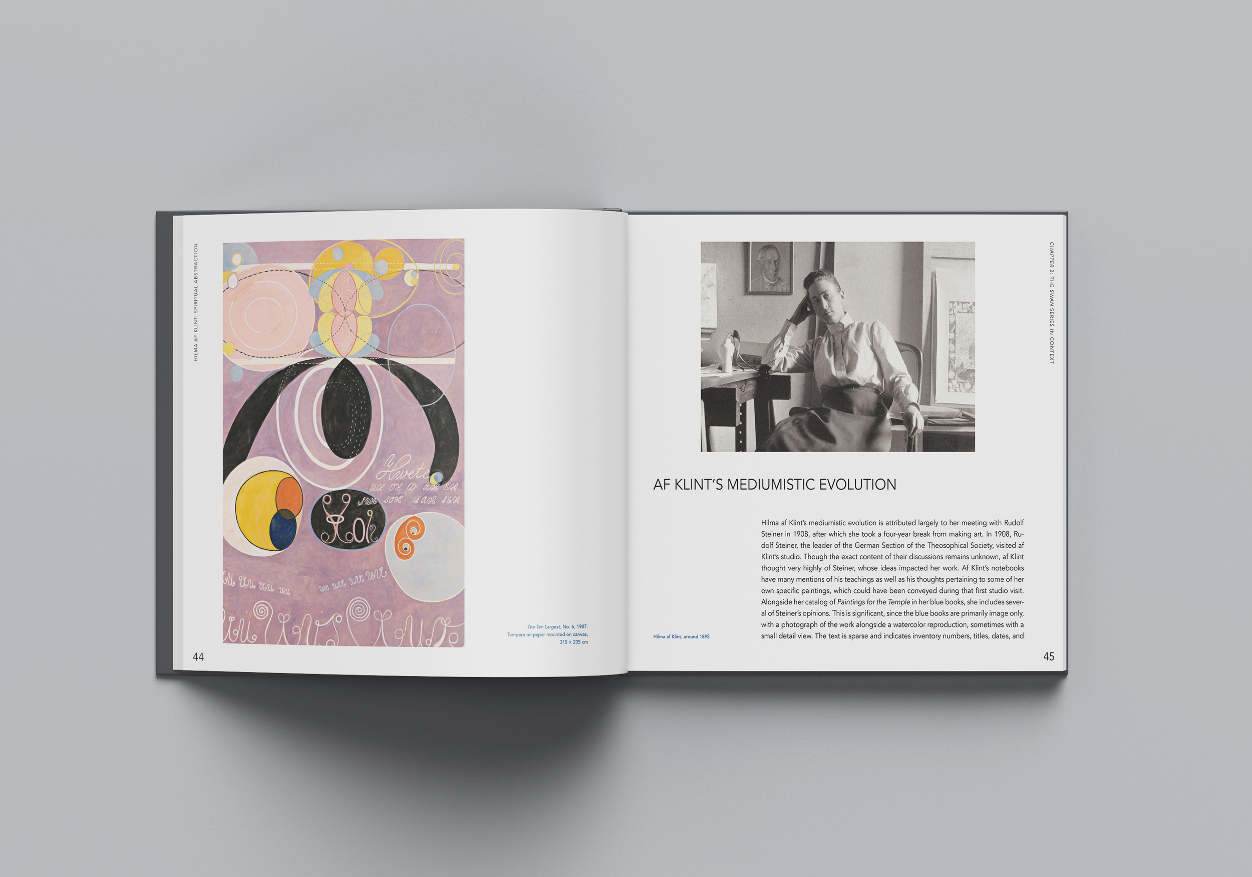 I created several spreads for a sample section of a monograph about the Swedish artist Hilma af Klint.