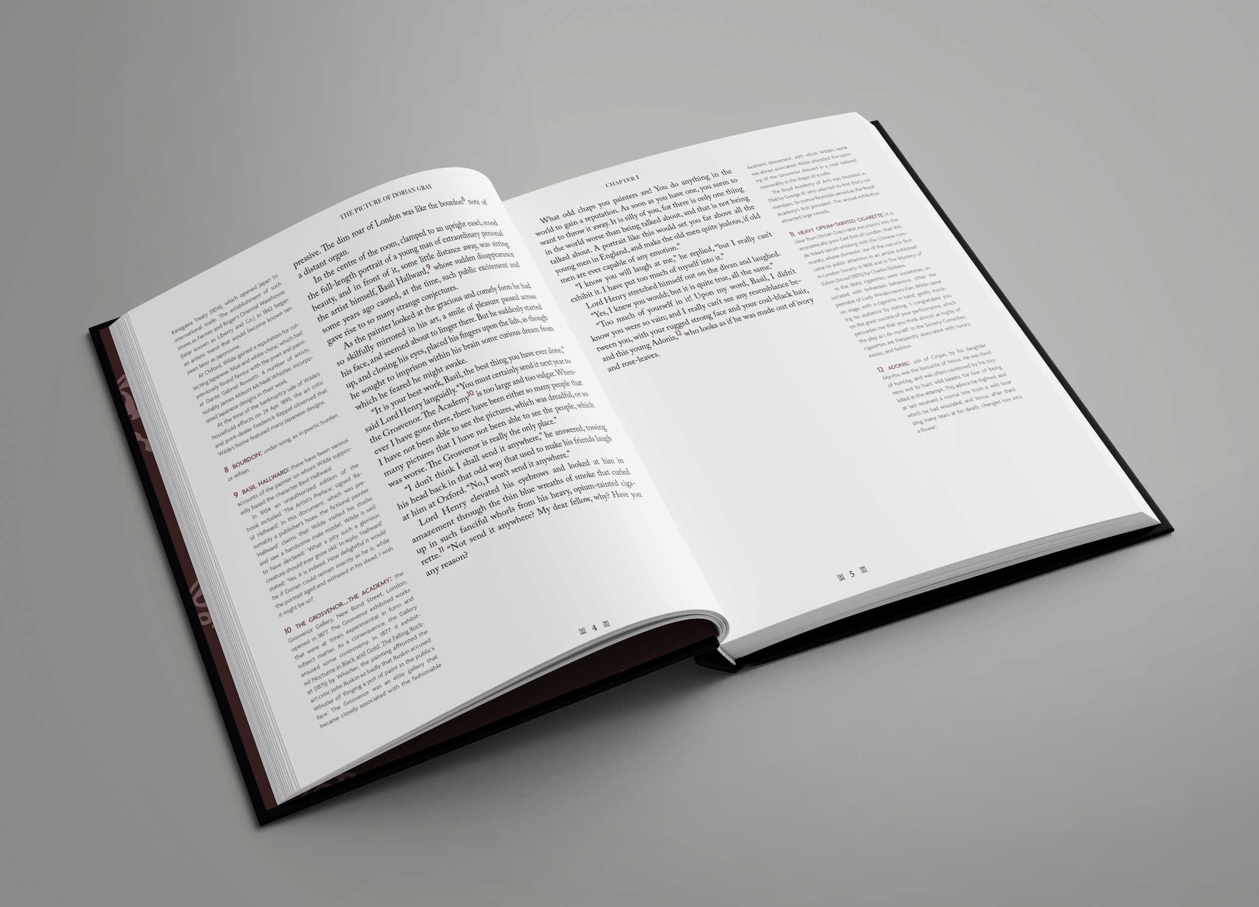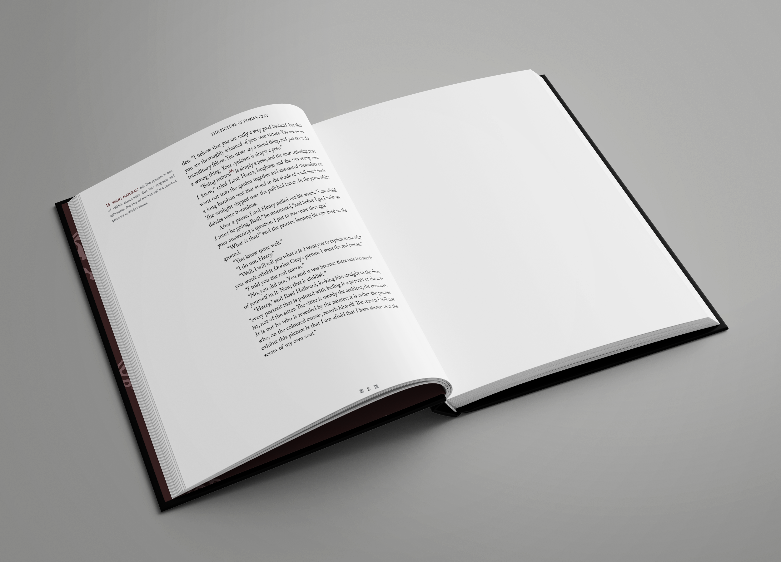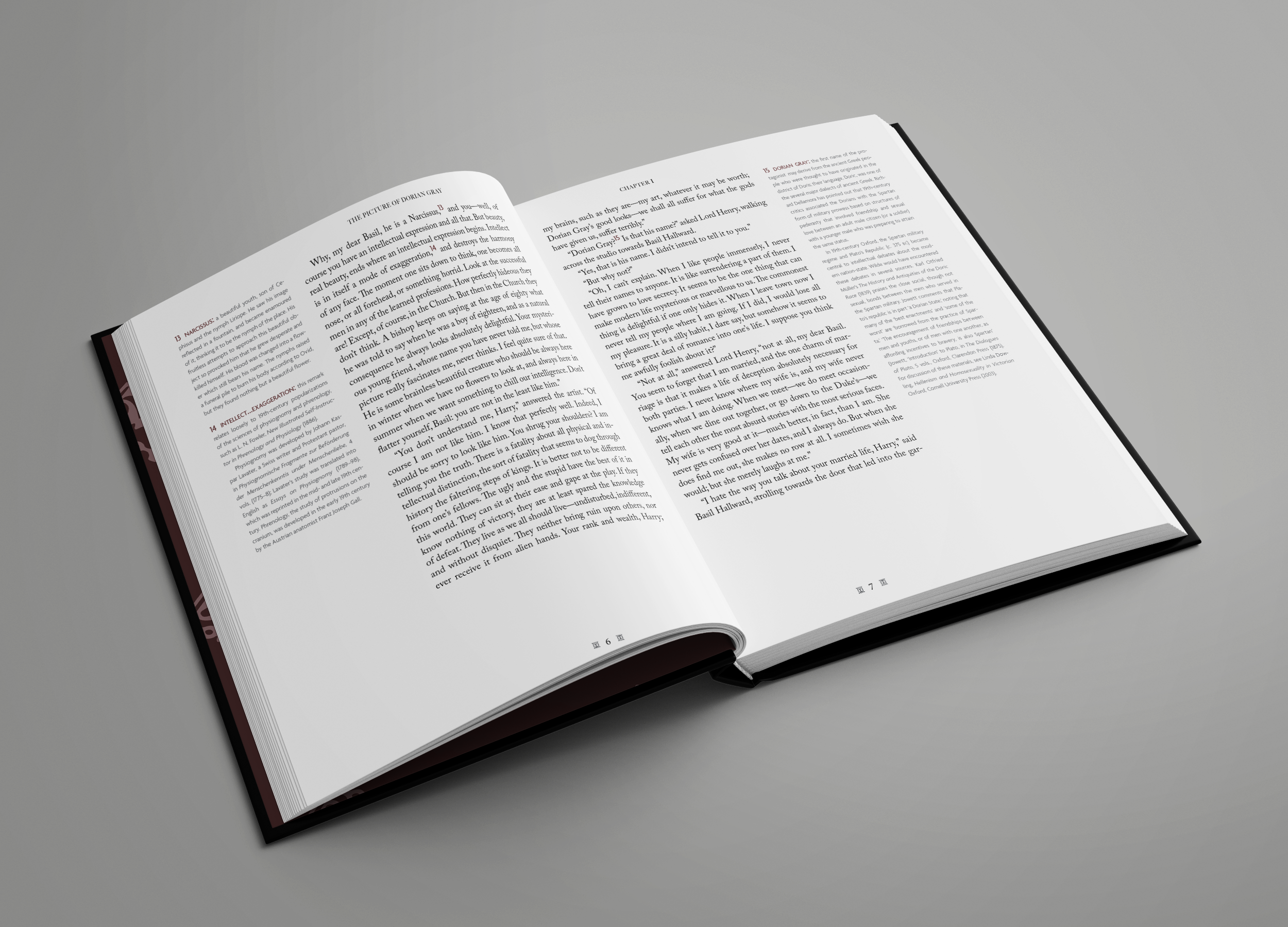 I created several spreads for a sample section of an annotated version of “The Picture of Dorian Gray” by Oscar Wilde