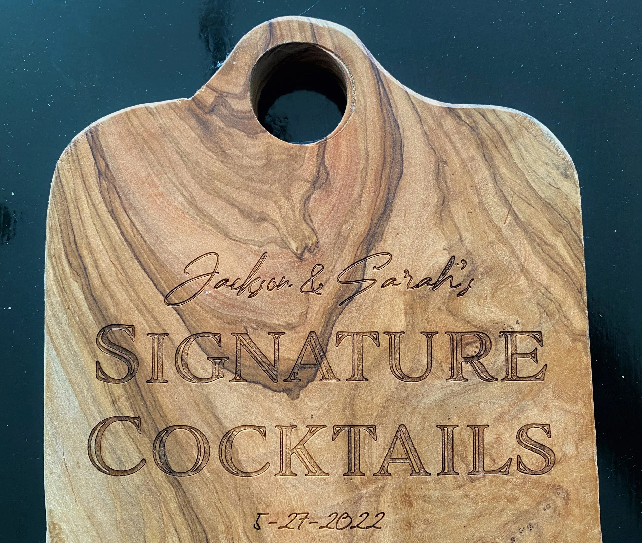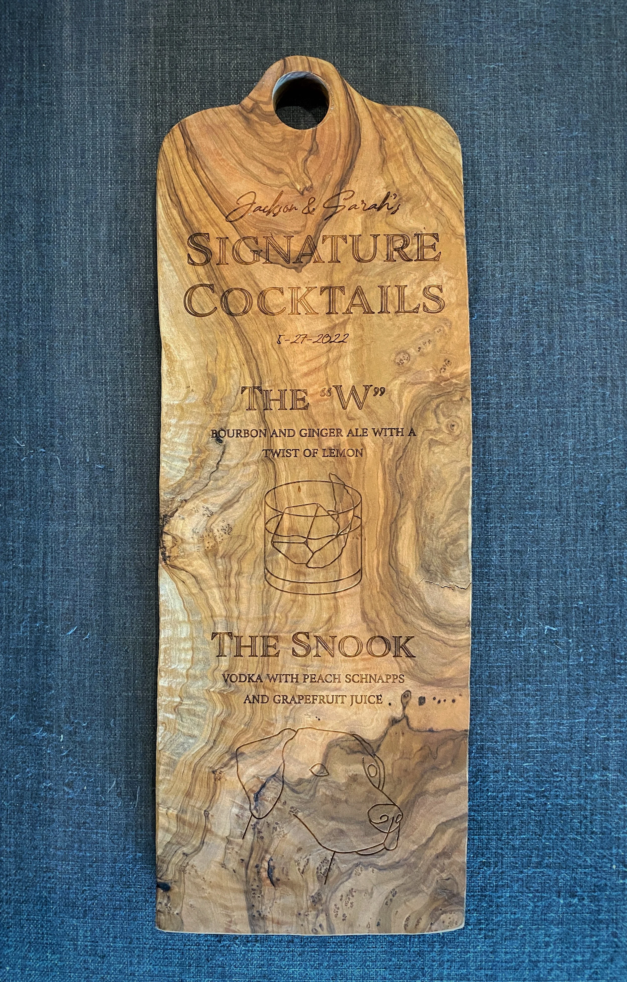 I created a custom ‘signature drinks’ board for my sister’s wedding, that could be used as a serving board after.
